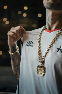 Para Eduardo Dal Pogetto, diretor da Umbro no Brasil, a collab vai muito além da moda: “A Umbro nasceu no futebol, mas o futebol é muito maior do que os 90 minutos. É linguagem, estilo, identidade… Mais do que uma colaboração entre marcas, essa parceria é uma conexão cultural. Uma coleção que fala de futuro, mas com os pés no presente das quebradas que sempre ditaram tendência e revelam grandes talentos, que são esses diamantes encontrados da periferia”.